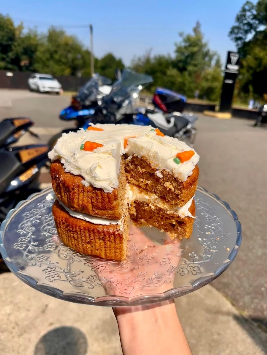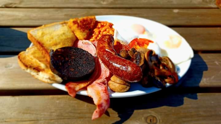 Kept seeing Emma’s cafe pop up as a great biker destination place to eat but never managed to get there to see. Even more important to go visit as I’m only 30 mins away (on a a bike!!!). I’d planned to go when the skies cleared, we’ve had awful weather and finally I saw blue skies. I was going to get to the cafe late, they shut at 3pm and I was arriving at 2pm so I asked in the evening if they will be doing food when I arrive. Emma herself replied straight away saying yes. Now that’s dedication! I kept seeing her amazing cakes, deserts and quiches being posted so wanted to try some. I arrived before closing time, surprised by how busy it was for a Thursday lunch. There were a few tables occupied by bikers. I ordered tea and breakfast. With carrot cake to take home to the wife. The tea was amazing. Proper builders tea with decent tea bag and served in a mug. Tasty breakfast with all the trimmings. I had to have crumble to follow. Now aside from the excellent food, what bowled me over was the genuine, authentic and friendly welcome. So hospitable and warming. Will be back!! Note the proper sauces, not watered down with vinegar!!!