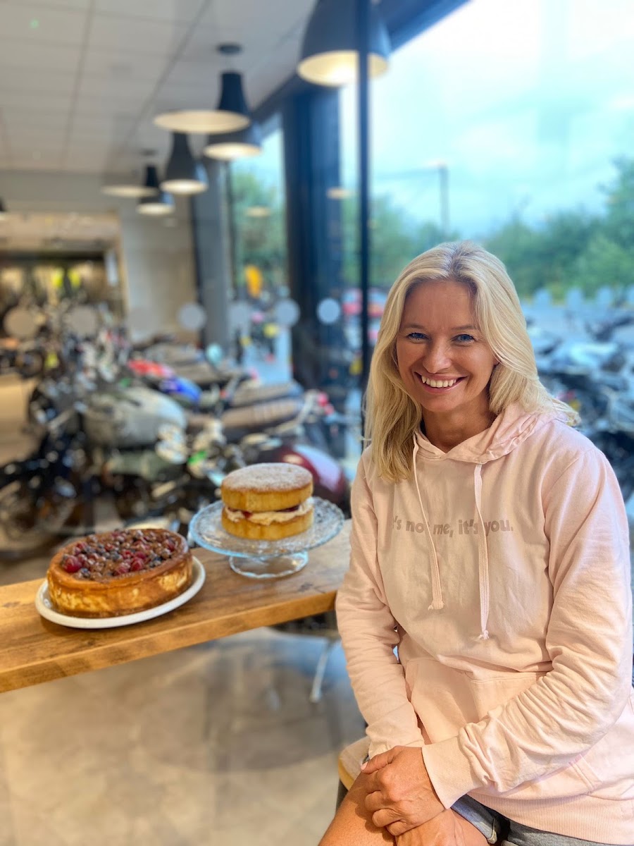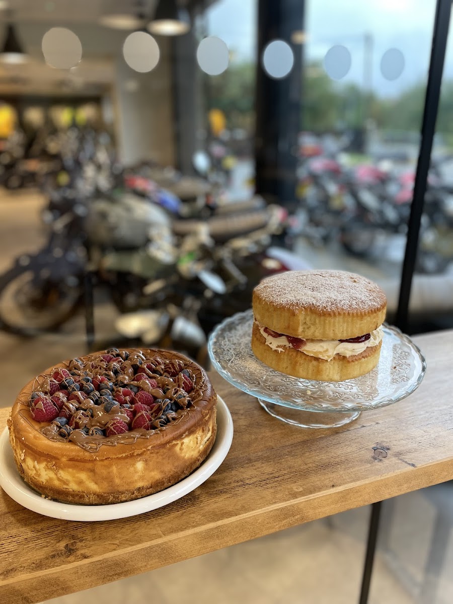 It's a Biker Cafe, that serves fresh cooked foods and homemade Cakes! Next to a Triumph dealership! Great people, great food, and great atmosphere! Definitely worth a visit on 2 wheels!