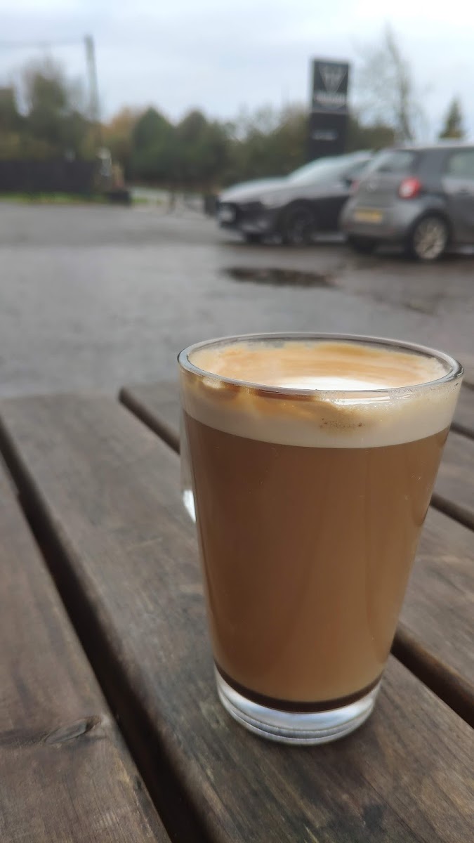A proper cafe, not just for bikers! Fabulous food where everything is cooked to order, well worth the wait should it be busy. Best sausages I've tasted in months Also very good coffee, flat white served in a mug!! The adjoining Triumph dealer is an added reason to stop for a while